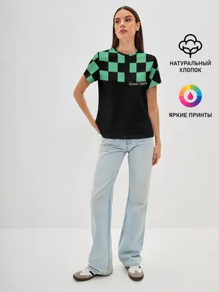 Женская базовая футболка / Kamado Tanjiro зеленые квадраты