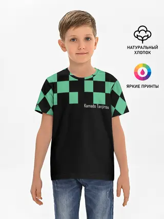 Детская базовая футболка / Kamado Tanjiro зеленые квадраты