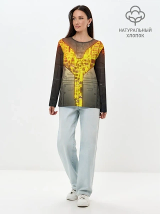 Лонгслив женский. Хлопок / Неоновая внутренность 3D