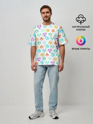 Мужская футболка оверсайз / GENSHIN IMPACT ЭМБЛЕМЫ