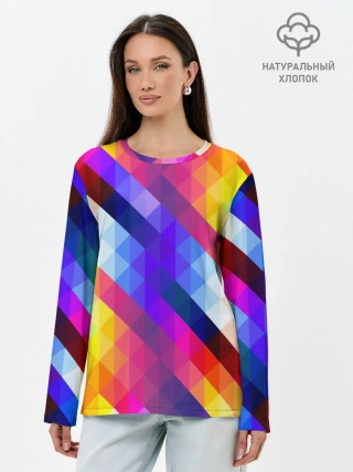 Лонгслив женский. Хлопок / Пиксельная радуга