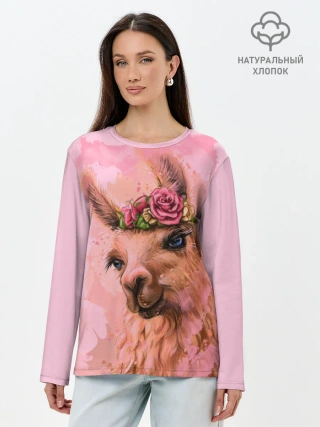 Лонгслив женский. Хлопок / лама с цветами