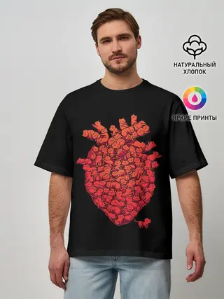 Мужская футболка оверсайз / Сердце Из Котиков
