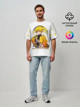 Мужская футболка оверсайз / Agatsuma Zenitsu Kimetsu no Yaiba