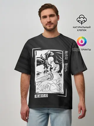 Мужская футболка оверсайз / Танджиро и Незуко Kimetsu no Yaiba