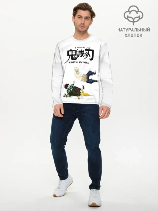 Мужской лонгслив базовый / Драка Иноске Танджиро и Зеницу