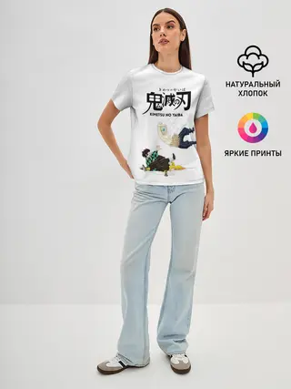 Женская базовая футболка / Драка Иноске Танджиро и Зеницу