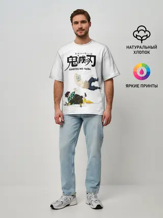 Мужская футболка оверсайз / Драка Иноске Танджиро и Зеницу