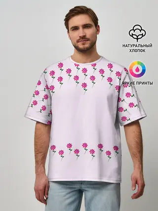 Мужская футболка оверсайз / розовые цветы | pink flowers