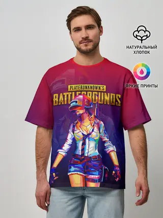 Мужская футболка оверсайз / PUBG GIRL / ПАБГ ДЕВУШКА