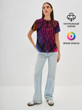 Женская базовая футболка / Фиолетовый узор 3D