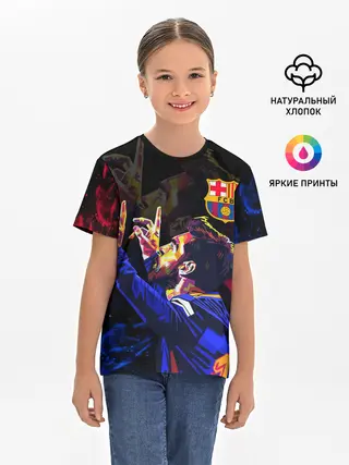 Детская базовая футболка / ЛИОНЕЛЬ МЕССИ / ОГОНЬ / FIRE
