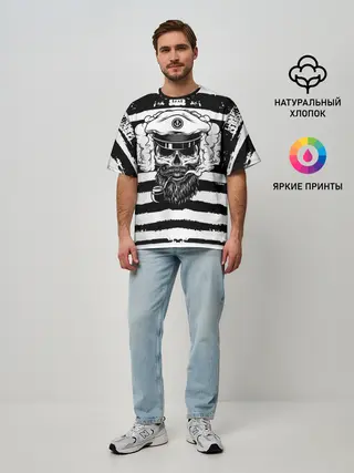 Мужская футболка оверсайз / ТЕЛЬНЯШКА ВМФ | ЧЕРЕП ФУРАЖКА