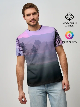 Мужская футболка оверсайз / forest at sunset