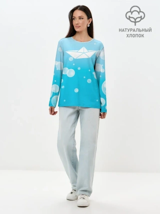 Лонгслив женский. Хлопок / Бумажный кораблик