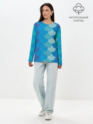 Лонгслив женский. Хлопок / Синяя чешуя рыбы
