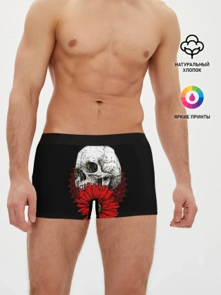Мужские трусы боксеры / Череп и Красный Цветок | Skull