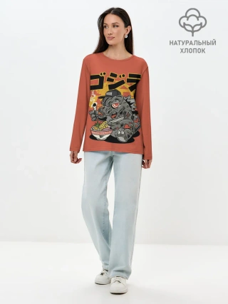 Лонгслив женский. Хлопок / ГОДЗИЛЛА КУШАЕТ