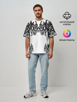 Мужская футболка оверсайз / абстракция, круги, линии,