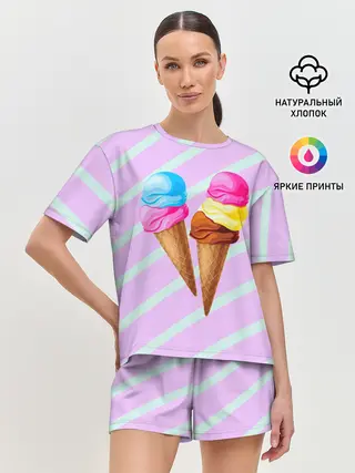 Женская пижама с шортами / Мороженое графический фон