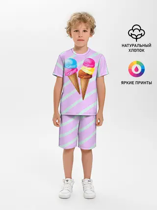 Детская пижама с шортами / Мороженое графический фон