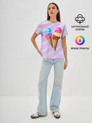 Женская базовая футболка / Мороженое графический фон