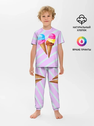 Детская пижама с брюками / Мороженое графический фон
