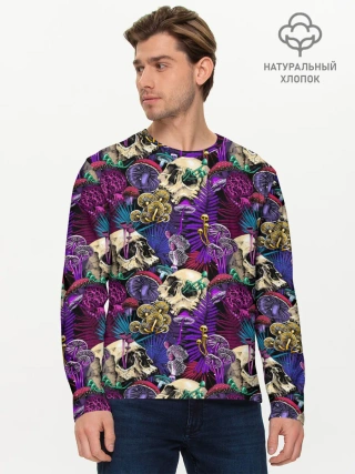 Мужской лонгслив базовый / Психоделика - черепа и грибы