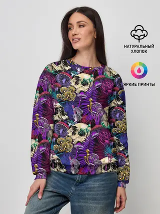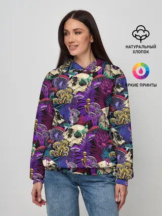 Женская футболка оверсайз / Психоделика - черепа и грибы