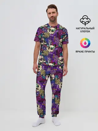 Мужская пижама с брюками / Психоделика - черепа и грибы