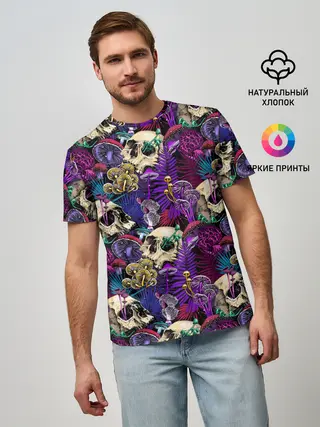 Мужская базовая футболка / Психоделика - черепа и грибы