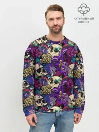 Мужской свитшот базовый / Психоделика - черепа и грибы