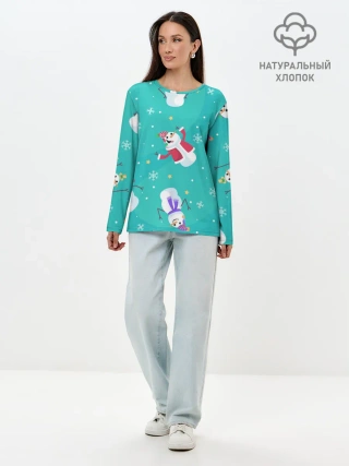 Лонгслив женский. Хлопок / РазНые Снеговики