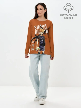 Лонгслив женский. Хлопок / Шоё Хината иероглифы Haikyuu!!