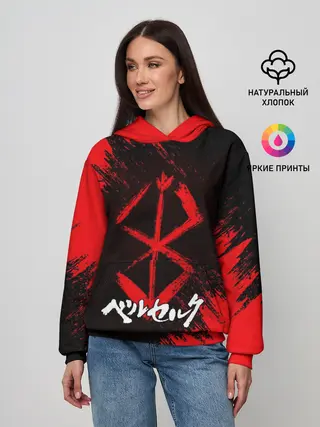 Худи мужской база хлопок / БЕРСЕРК лого и надпись
