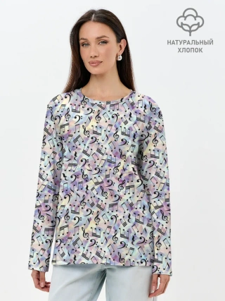 Лонгслив женский. Хлопок / Музыкальные Ноты