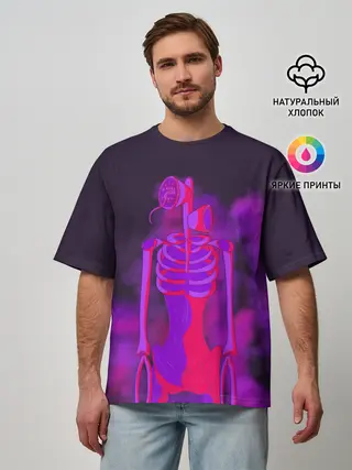 Мужская футболка оверсайз / СИРЕНОГОЛОВЫЙ НЕОН