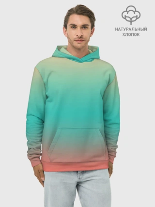 Худи мужской база хлопок / Красно-бирюзовый градиент