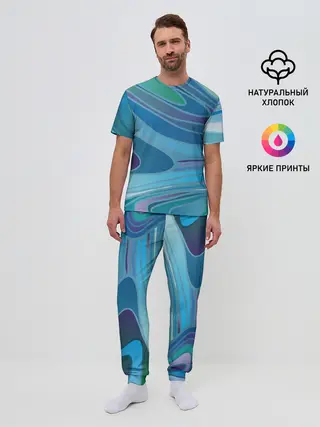 Мужская пижама с брюками / Морская волна