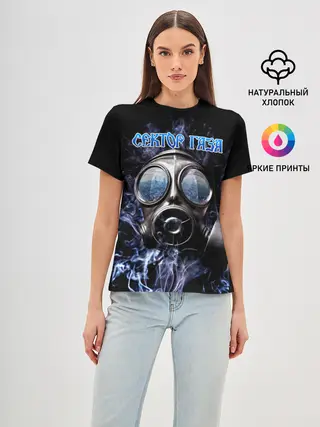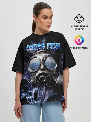 Женская футболка оверсайз / Сектор Газа противогаз и дым