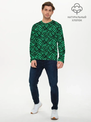 Мужской лонгслив базовый / Абстрактный зелено-черный узор
