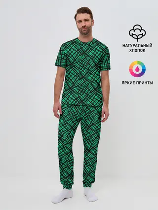 Мужская пижама с брюками / Абстрактный зелено-черный узор