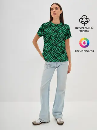 Женская базовая футболка / Абстрактный зелено-черный узор
