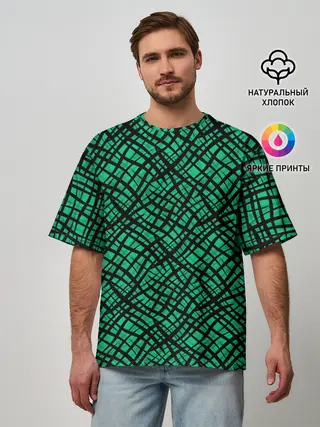 Мужская футболка оверсайз / Абстрактный зелено-черный узор