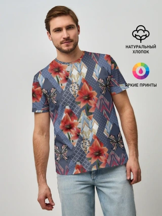 Мужская базовая футболка / Оранжево-серый пэчворк