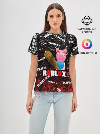 Женская футболка оверсайз / Roblox piggy/Свинка Пигги.