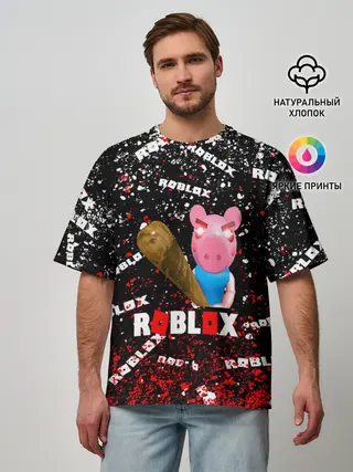 Мужская футболка оверсайз / Roblox piggy/Свинка Пигги.