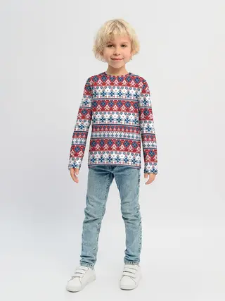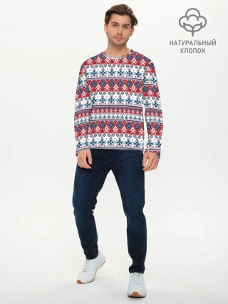 Мужской лонгслив базовый / Этнический красно-синий узор