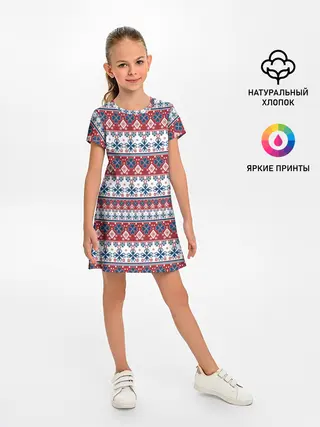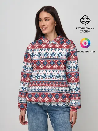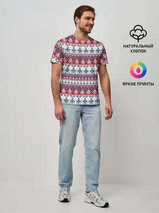 Мужская футболка оверсайз / Этнический красно-синий узор