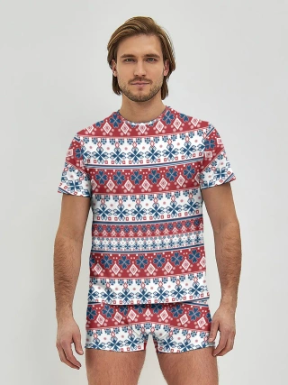 Мужские трусы с футболкой / Этнический красно-синий узор